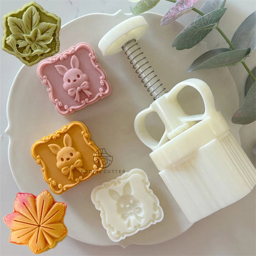 3 Styles Rabbit Leaf Pattern DIY Baking Mooncake Mold Hand Press Pastry Mold for Cake Decor Mid- Autumn Festival Bakeware Tools